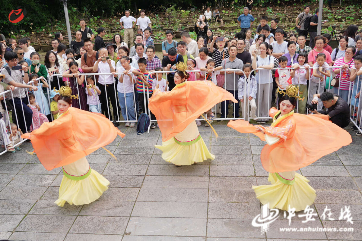 活动期间,包公园景区日均客流量显著攀升,多项核心亮点内容吸引大量市民游客驻足参与。编钟雅乐首演当日,清风阁景点内观众如织,数千名游客共同聆听了编钟与古琴、洞箫等古乐的和谐奏鸣,感受“八音协畅”的千年礼乐传承。活动期间围绕“听国乐”主题,景区开展的“编年式演艺”在浮庄及包河南岸轮番上演,单日观演人次突近万人,盛唐风韵《唐宫夜宴》、宋代审美艺术代表《只此青绿》以及《春颂》《芳华》等充满生机的舞蹈表演与国潮电音的创新融合,让现场观众大饱眼福并送上阵阵掌声。