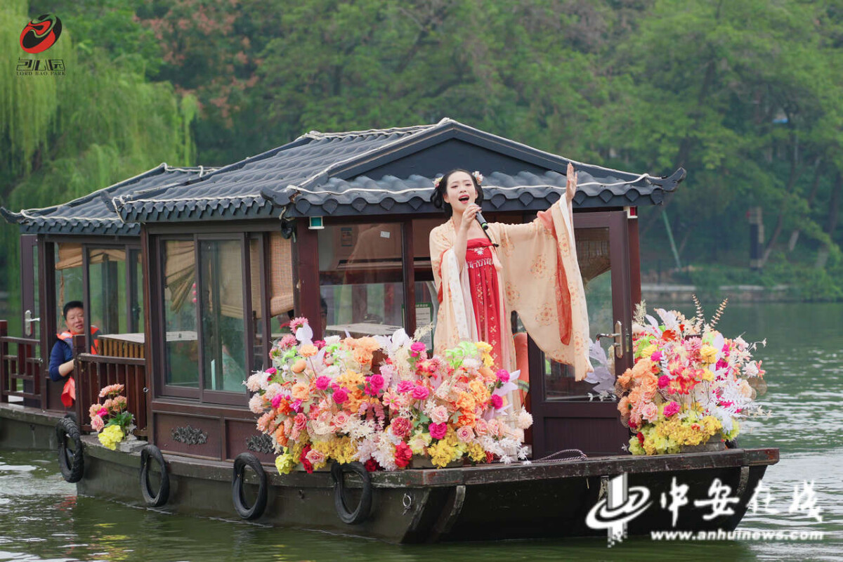 “包公”携四大护卫巡游活动再现包河南岸,吸引了众多汉服爱好者及市民围观互动,现场拍照打卡络绎不绝,成为了景区内一道靓丽的风景线;水上演艺——瑶池仙舟环节创新推出“水上K歌”,三场“k歌”活动吸引近百位游客互动接唱,当《刀剑如梦》《黄梅戏》《贝加尔湖畔》等耳熟能详的经典音乐响起时,水上画舫游船与岸边观众接唱的歌声相映成趣。