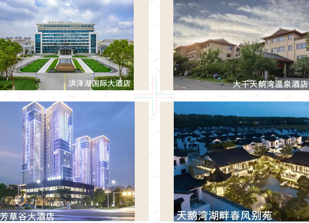 洪泽湖国际大酒店、芳草谷大酒店、大千天鹅湾温泉酒店、天鹅湾湖畔春风别苑