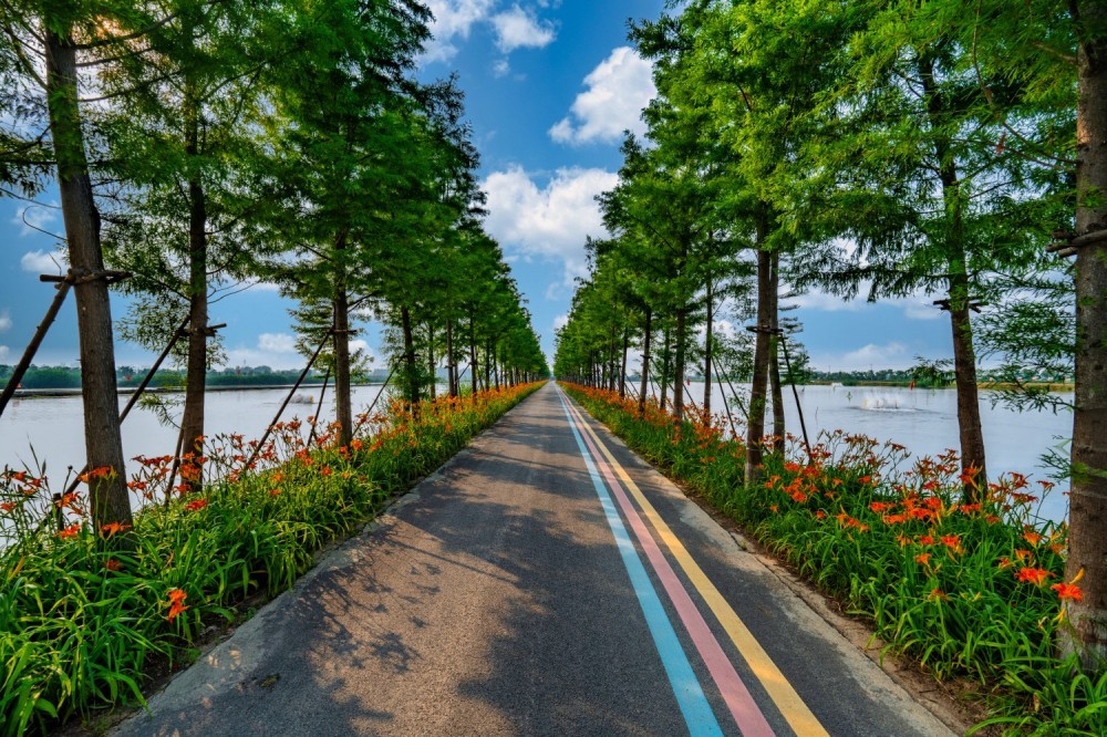 从县城驱车一路向东,高楼渐退,稻田、荷塘、白墙黛瓦次第展开。主干道两侧,高大的水杉整齐列阵,形成一条条绿色长廊,水杉步道穿梭于稻田间,白鹭翩然起舞,呈现一幅人与自然和谐共处的优美画卷。