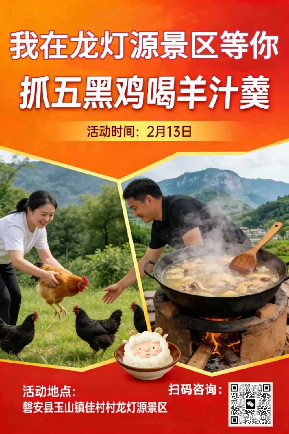核心提示:年味正浓,龙马启新程2月13日,来磐安龙灯源赴一场「百味龙腾宴」30元解锁一整天的年味狂欢,性价比拉满!游龙灯源 抓五黑鸡喝羊汁羹品非遗馒头 赏非遗节目你若未脱单来现场偶遇心仪之人(活动详见下方福