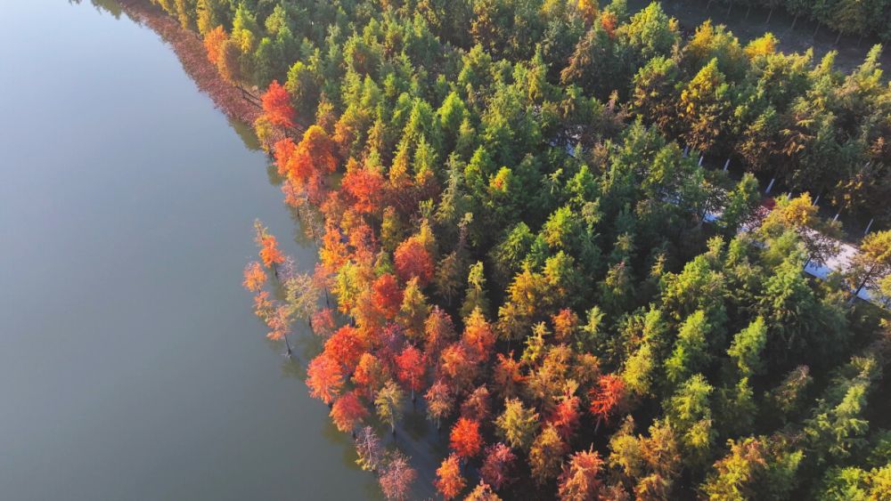 近日,随着巢湖之风掠过滨湖国家森林公园,园内千亩红杉林已悄然换上“盛装”。翠绿渐染金黄,金黄中透出血橘,阳光穿透枝叶交织成梦幻的光影隧道,脚下落叶发出的“沙沙”声,成为秋日里最动听的自然絮语。