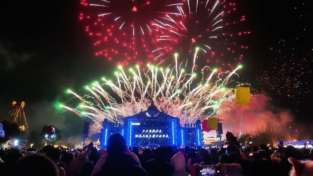 夜晚,湖畔灯火璀璨。湖边篝火燃起暖意,取材于当地传说的“淮渎渔火夜宴”情境表演,通过“鱼跃龙门”“湖月对歌”等篇章,以光影和舞蹈生动演绎地方古老传说,为观众们带来一场如梦如幻的视觉盛宴。村内小酒馆里,民谣浅唱与涛声相和,小酌一杯,疲惫尽消,再燃放烟花,共守年岁,尽情享受过年的惬意。