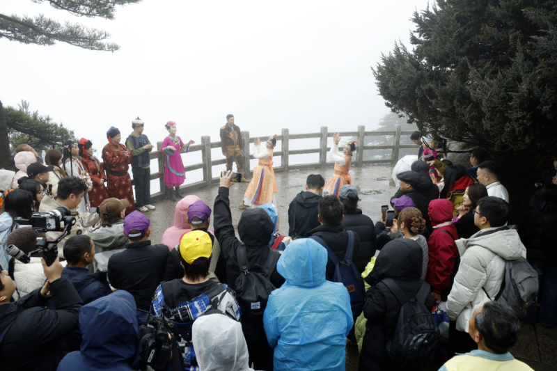 2月27日,“皖风有约 草原相见”呼伦贝尔大草原文旅推介活动走进黄山风景区,在巍峨奇秀的黄山之巅,为游客带来一场独具草原风情的文化汇演。