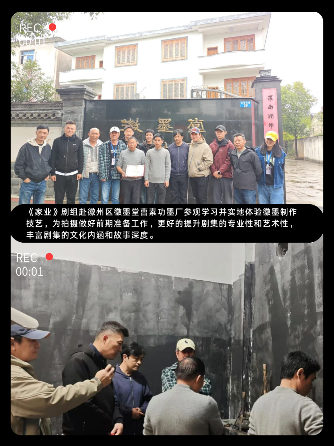 2024年11月,《家业》剧组专门来到这里,杨紫、韩东君等主演在徽墨制作技艺省级非遗代表性传承人吴成林大师的指导下,亲身学习体验了配料、制墨、晾墨、描金等徽墨制作的全过程。