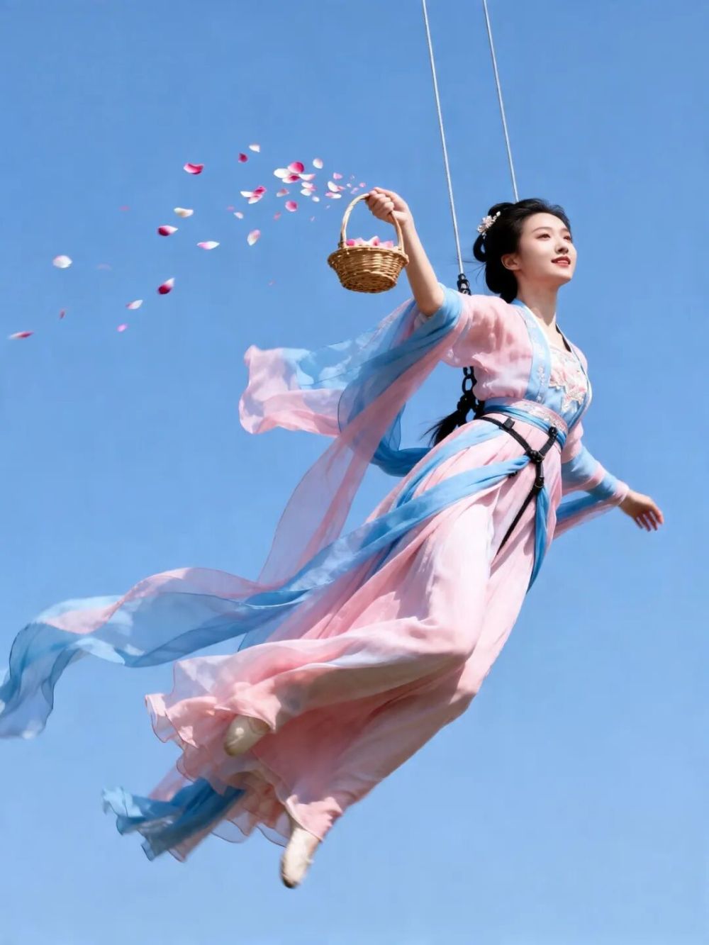 携花起舞,仙姿缥缈,于云端向人间撒下祝福。在白天,是万花随风落人间,在夜色中,则如星辰蓦然绽开。