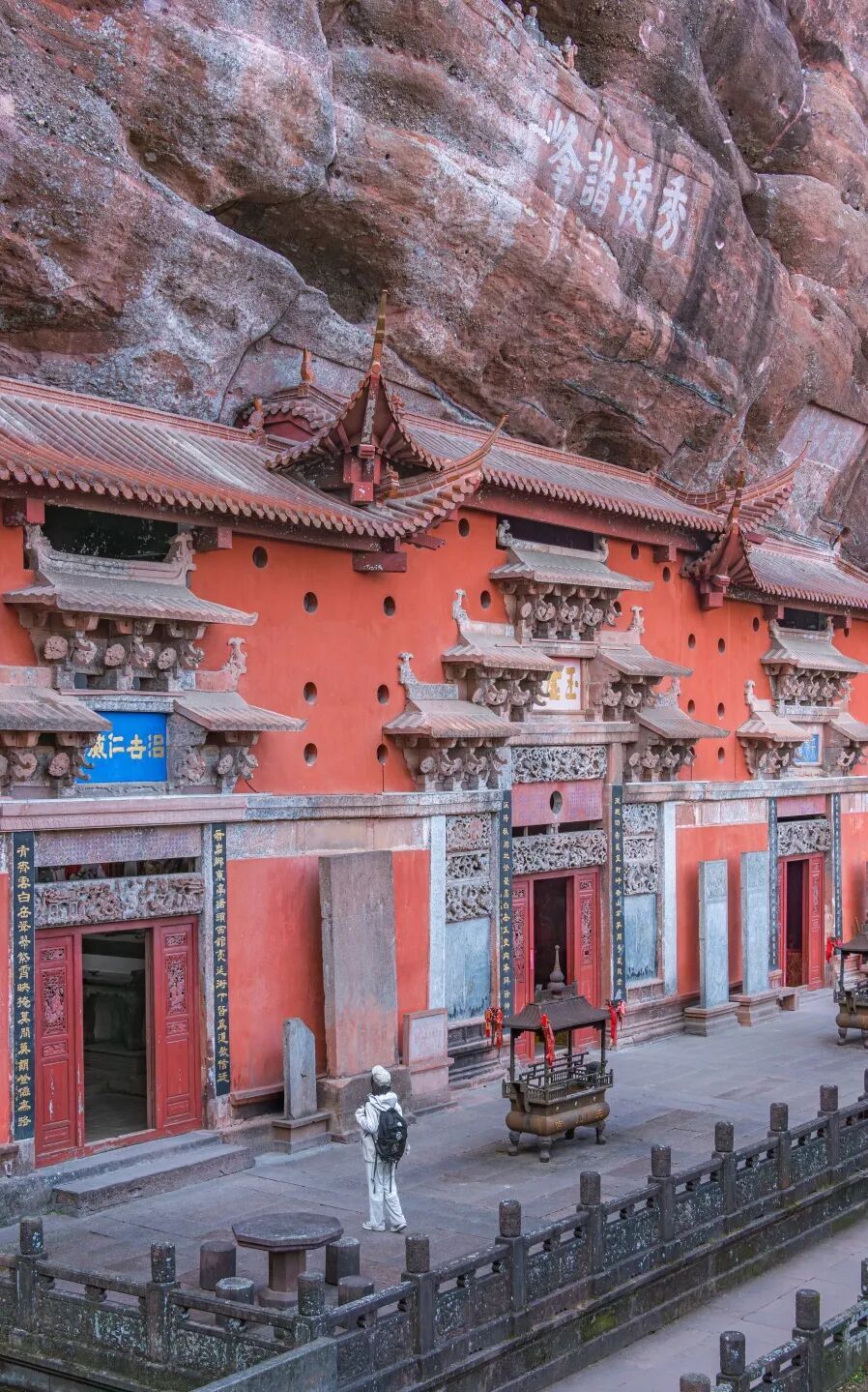 来齐云山,不仅能打卡如仙人手笔般的摩崖石刻,在悬崖边的古村落听风悟道,若有缘还能偶遇云海奇观(非晴天时云海生成率更高)。
