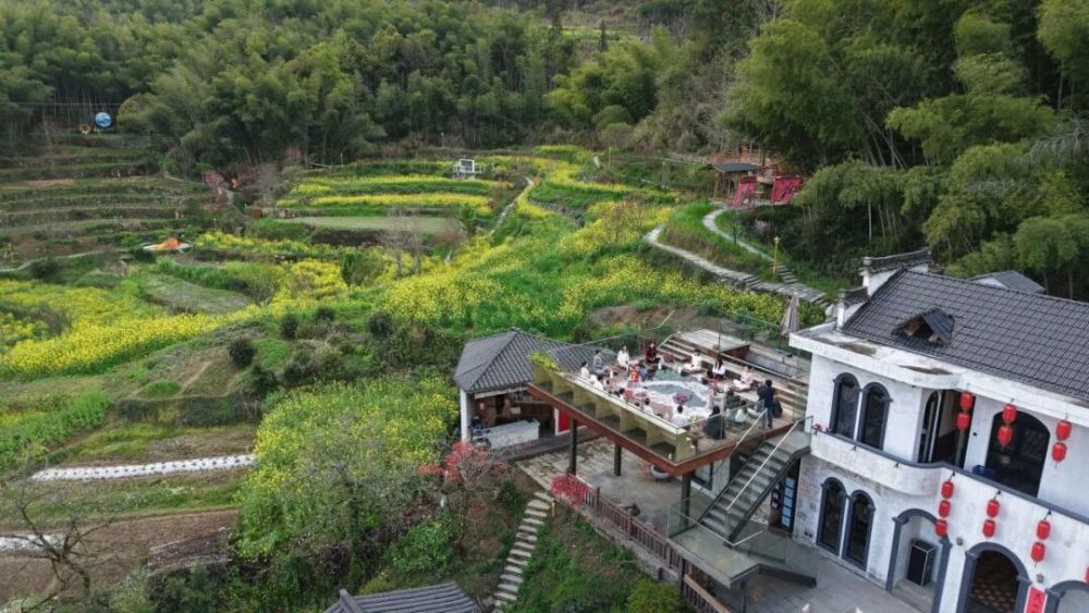 竹月公馆的天台,是灵山最奢侈的疗愈场。脚下是金色花海,身后是摇曳竹林。