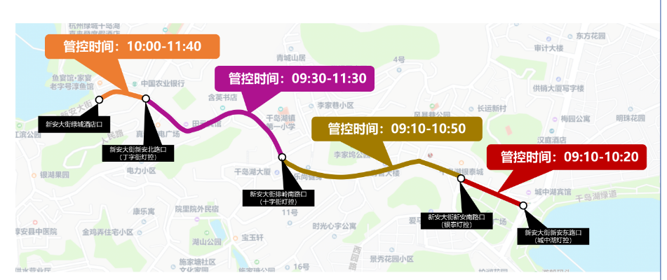 一、4月30日9时10分至10时20分,新安大街新安东路路口(城中湖灯控)至新安大街新安南路路口(银泰灯控)实施交通管控;