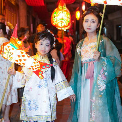 五一劳动节期间,每日穿汉服游园的前8位游客,可到“唐模法国家庭旅馆”前台登记租用鱼灯(免租金,先到先得),跟随鱼灯队伍共游水街。