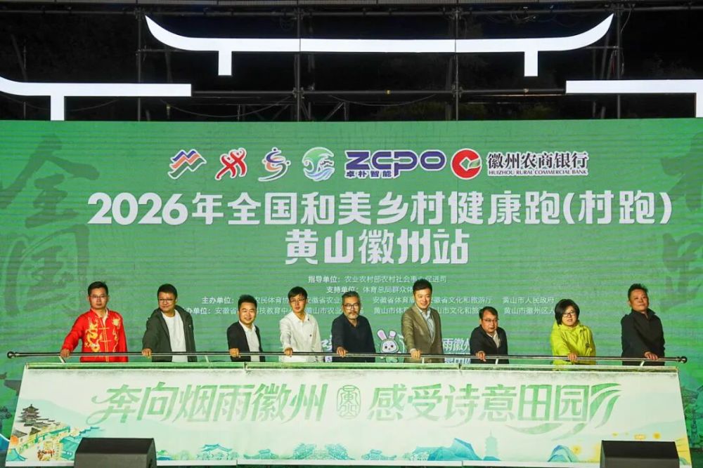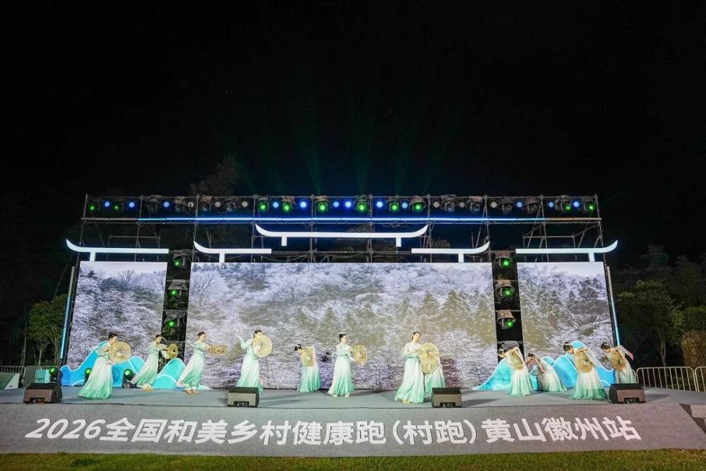 近年来,大灵山旅游度假区深耕“村字号”IP,通过沉浸式夜游、非遗体验等业态,让村民在家门口吃上“旅游饭”。当晚,9位来自不同领域的“三农”代表携手登台,共同启动2026年全国和美乡村健康跑(村跑)徽州站。
