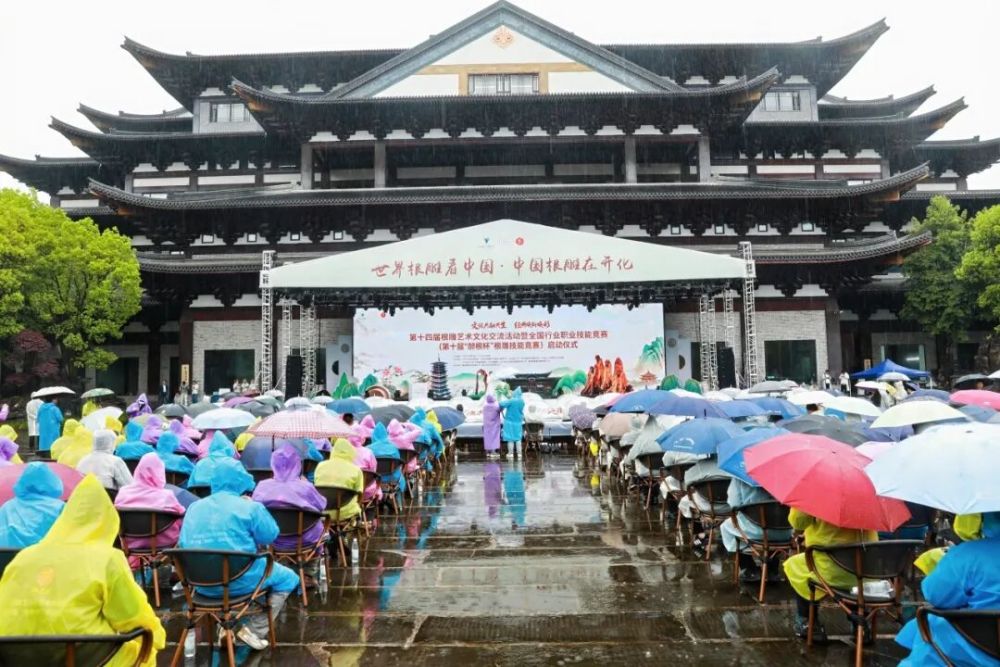 4 月 22 日上午,本届技能竞赛的开幕式在根缘小镇玄妙广场盛大举行。国家级行业协会领导、省市县各级领导、中国美术学院等高校专家、全国根雕艺术大师及参赛选手代表出席仪式。开化县委副书记、县长王盛丰在致辞中表示,开化将以此次赛事为契机,深耕根雕非遗传承,推动根宫佛国焕新提质,构建 “大景区 + 新业态” 发展模式。中国轻工业联合会副秘书长桑叶指出,本次竞赛是弘扬工匠精神、推动非遗创新发展的重要举措,对壮大根雕人才梯队意义深远。