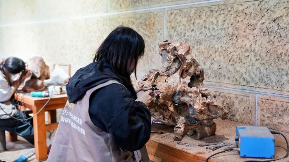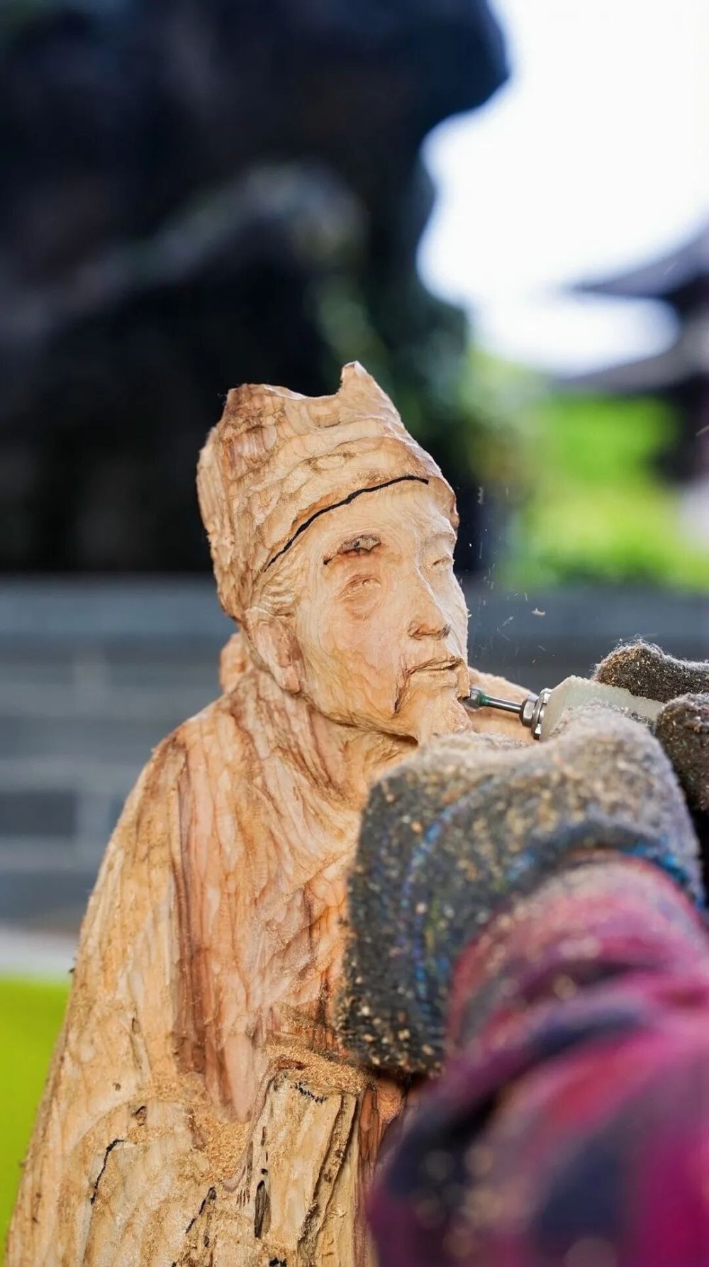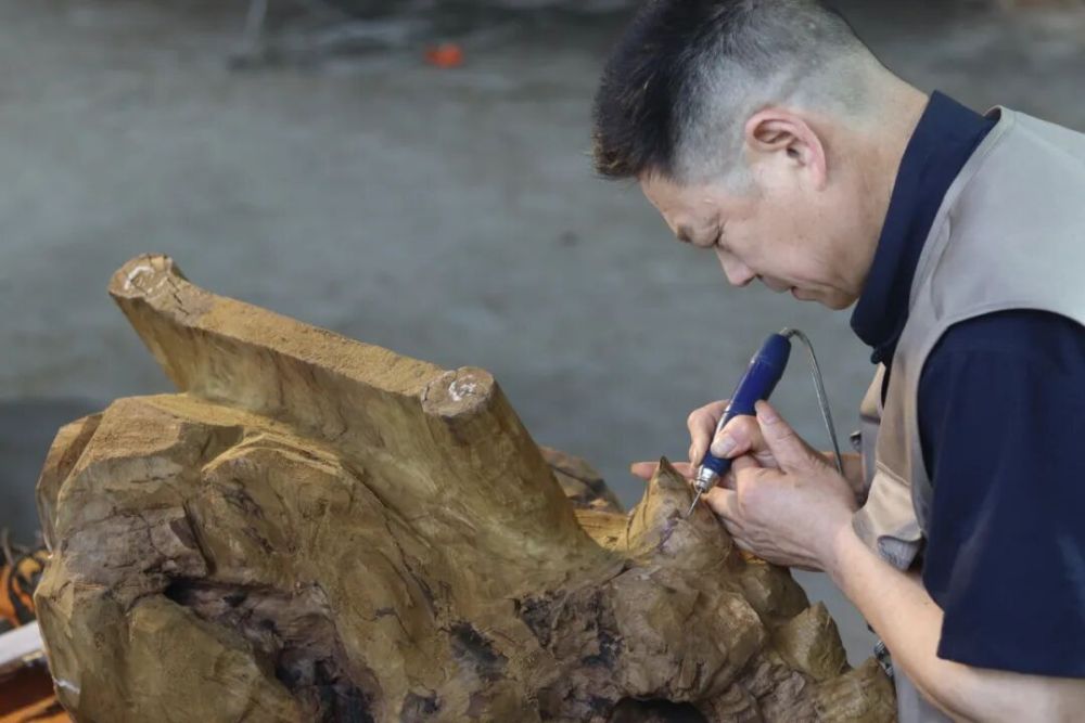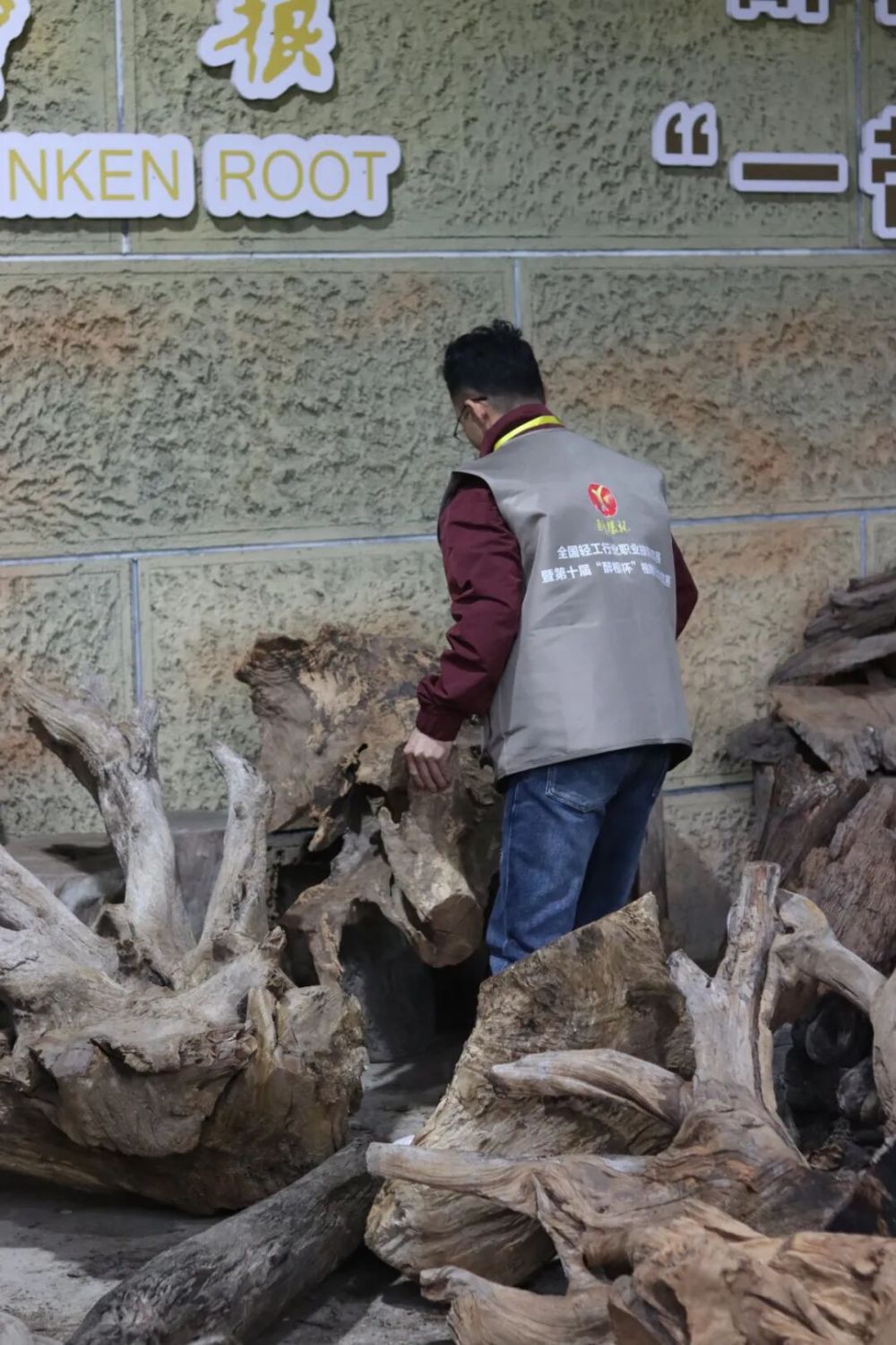 他们对选手的鼓励和对赛事的重视,让选手们更加充满干劲,比赛现场昼夜不停。现场的局势也十分精彩,有的根材前一天看起来还像个不好弄的“大块头”,后一天去已经能看出雕刻的内容了。即便是同一天,不同时间段去现场看都会有新的惊喜,都会忍不住惊呼这些大师的手艺。