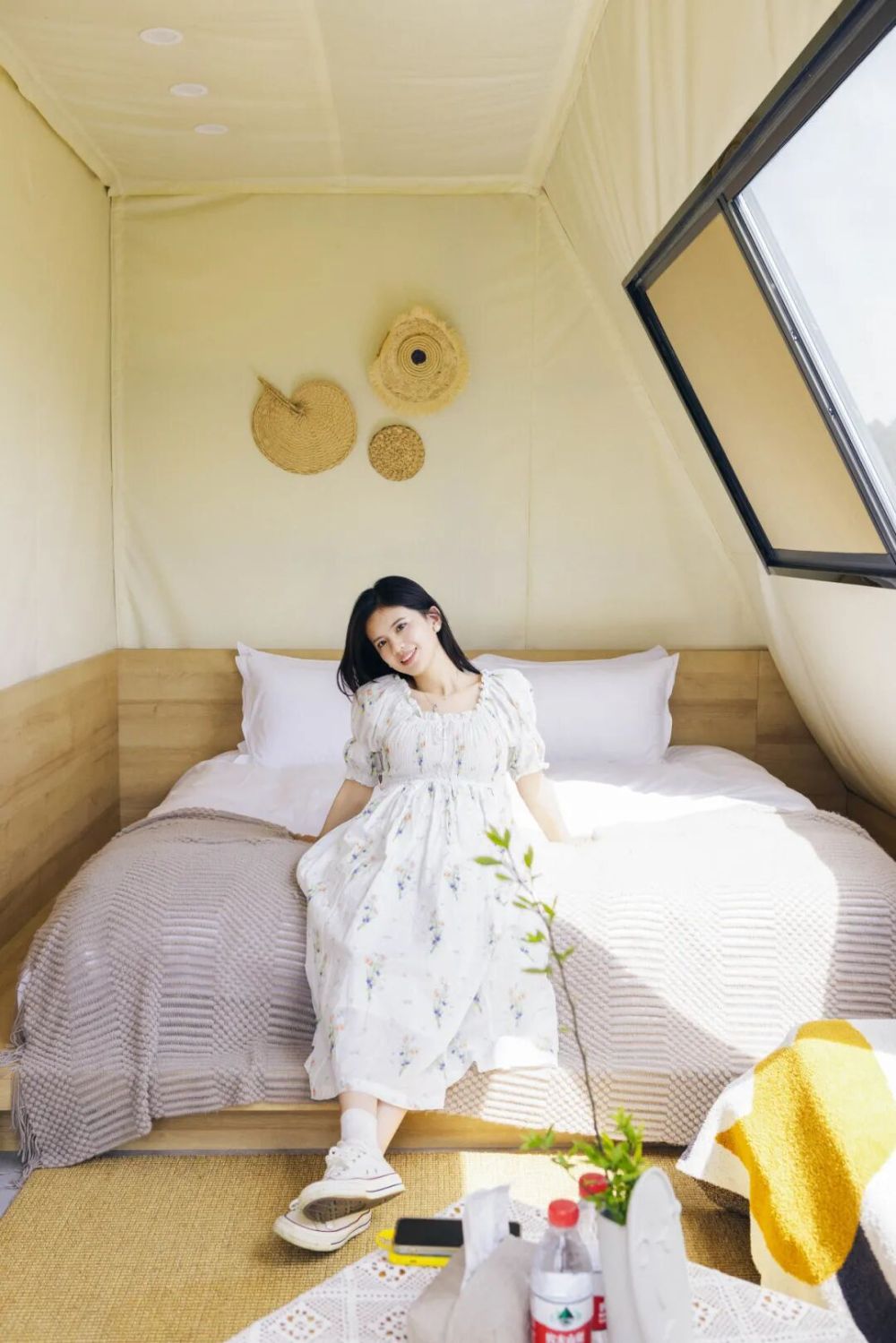 等天彻底暗下来,灯串亮起来,围着篝火聊聊天,或者安安静静看星星。累了还可以一头扎进星空帐篷。